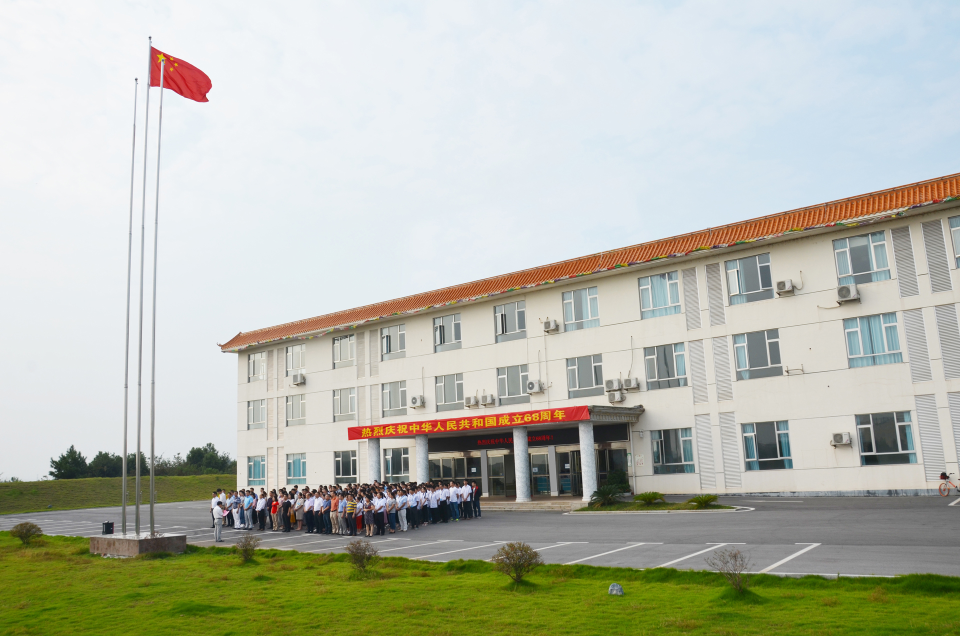 9月30日,爾康制藥在總部廠區(qū)舉行慶祝中華人民共和國(guó)成立68周年升旗儀式,爾康制藥總部廠區(qū)近三百人參加。