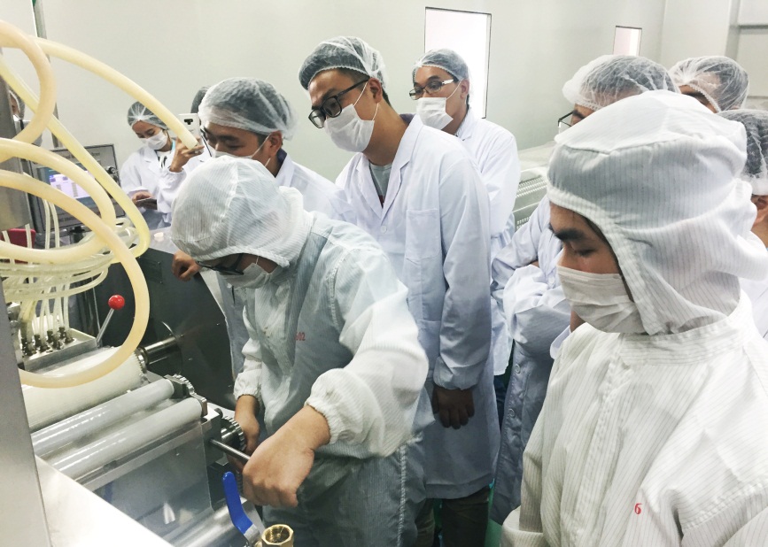 “爾康制藥先進(jìn)的質(zhì)量管理理念令人驚嘆,從原料到生產(chǎn)再到產(chǎn)成品各個環(huán)節(jié)的安全都得到了充分的保障,所以每一粒膠囊的品質(zhì)都毋庸置疑?!痹诘矸壑参锬z囊車間,來自泰國的軟膠囊生產(chǎn)商Mega在參觀了淀粉植物軟膠囊、硬膠囊的生產(chǎn)過程后坦言,這次交流讓他收獲頗豐。